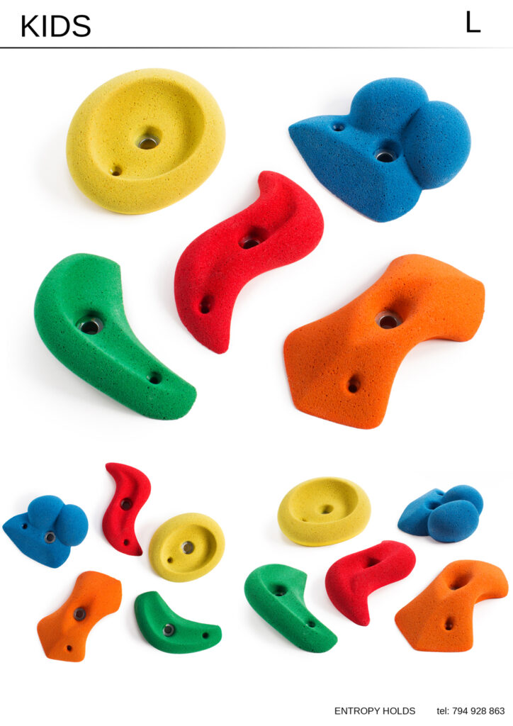Zestaw dużych kamieni do wspinaczki, idealnie zaprojektowanych dla dziecięcych rączek.