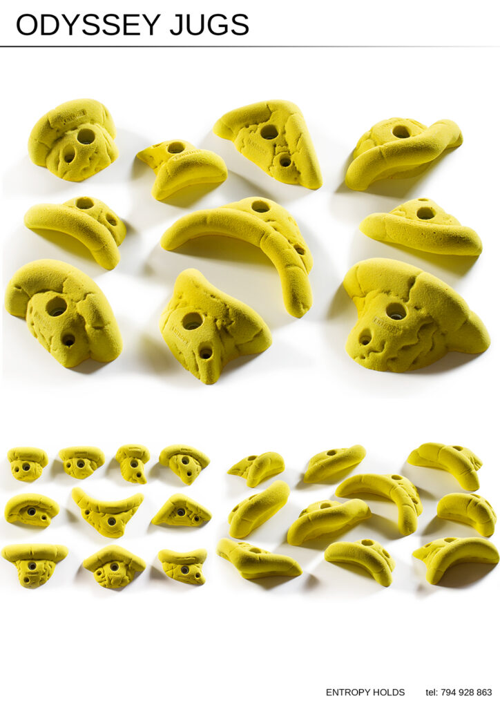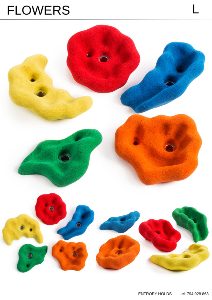 Zestaw dużych kamieni do wspinaczki o fantazyjnych kształtach.